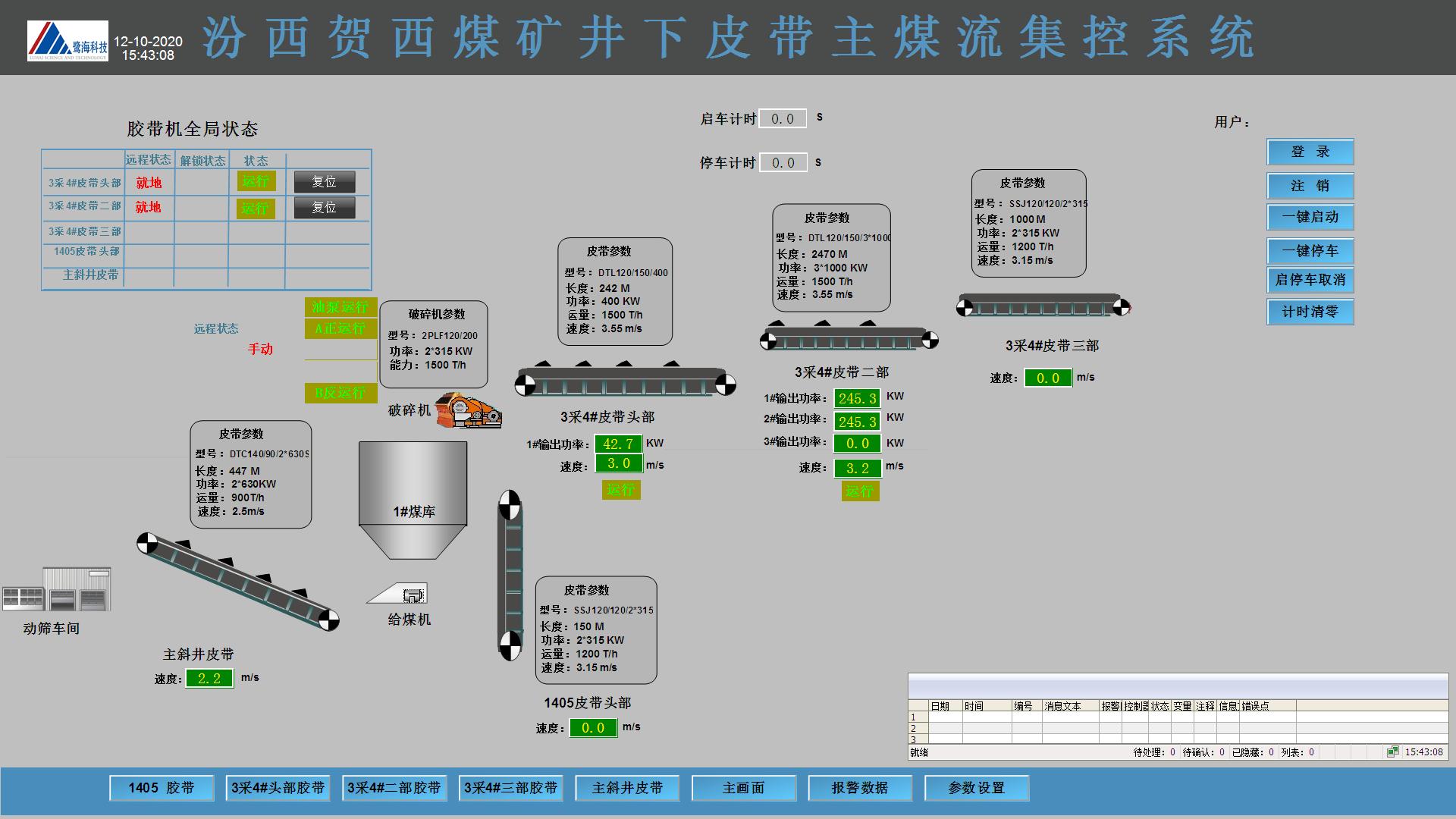 地面集控數據中心實現煤流運輸系統集中遠程自動控制,實現單控、聯控、順序啟停、一鍵啟停。達到無人值守,有人巡檢。
